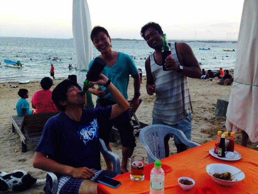 夜はムタサリビーチのwarung kusumaでかんぱーい☆